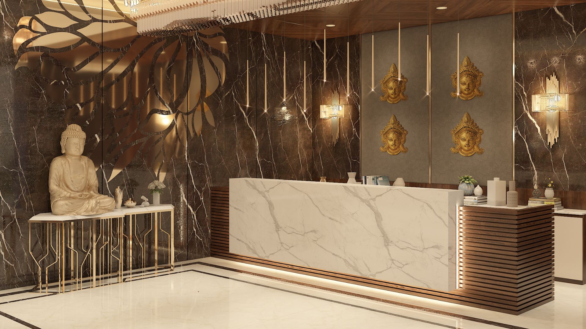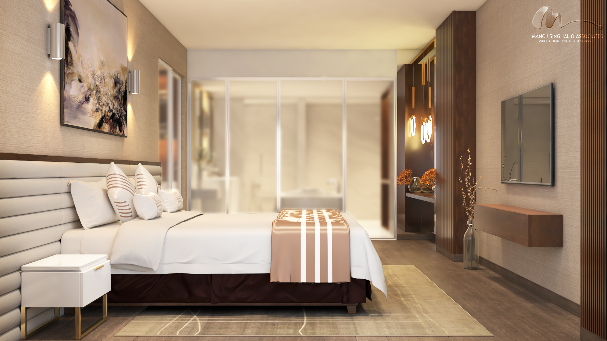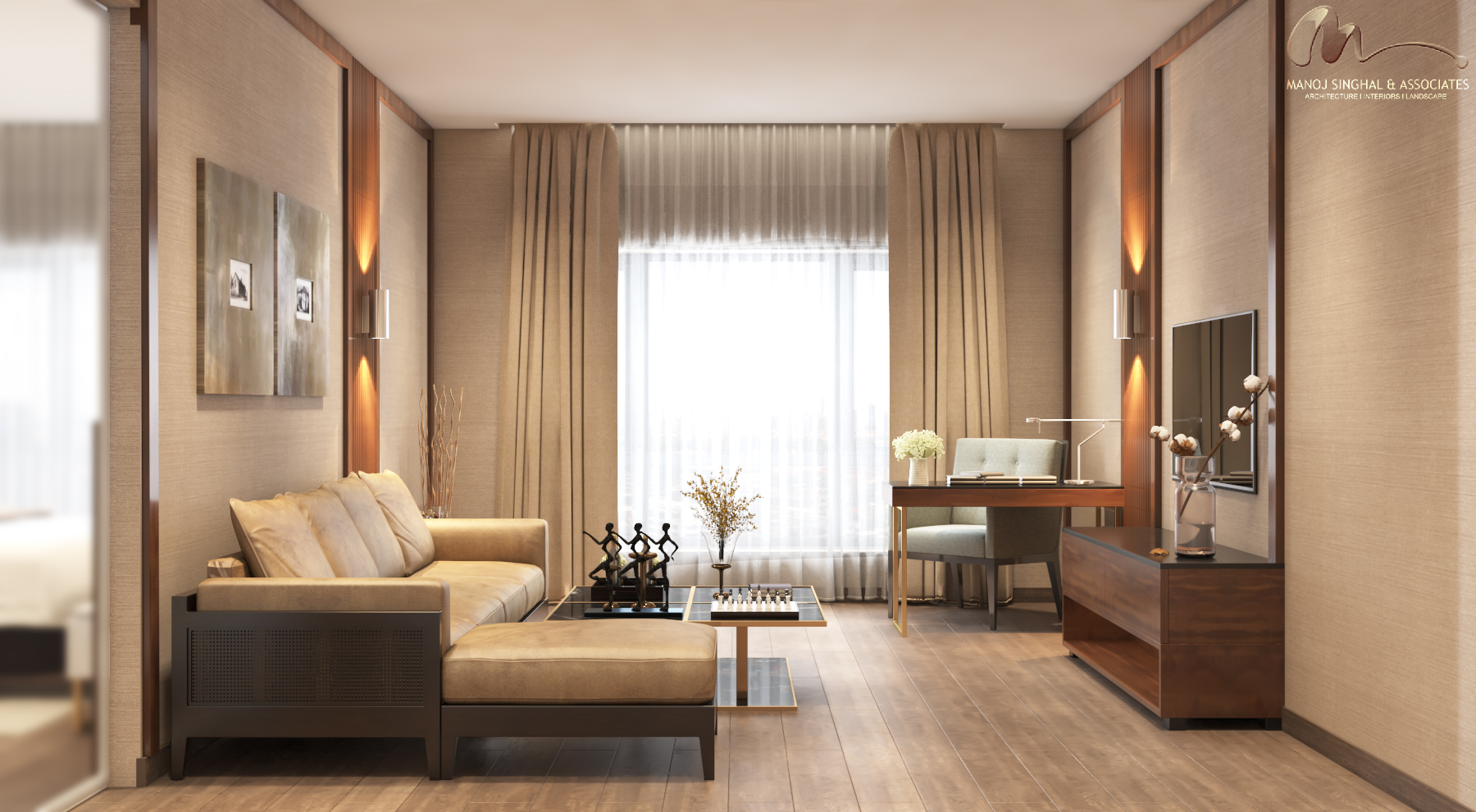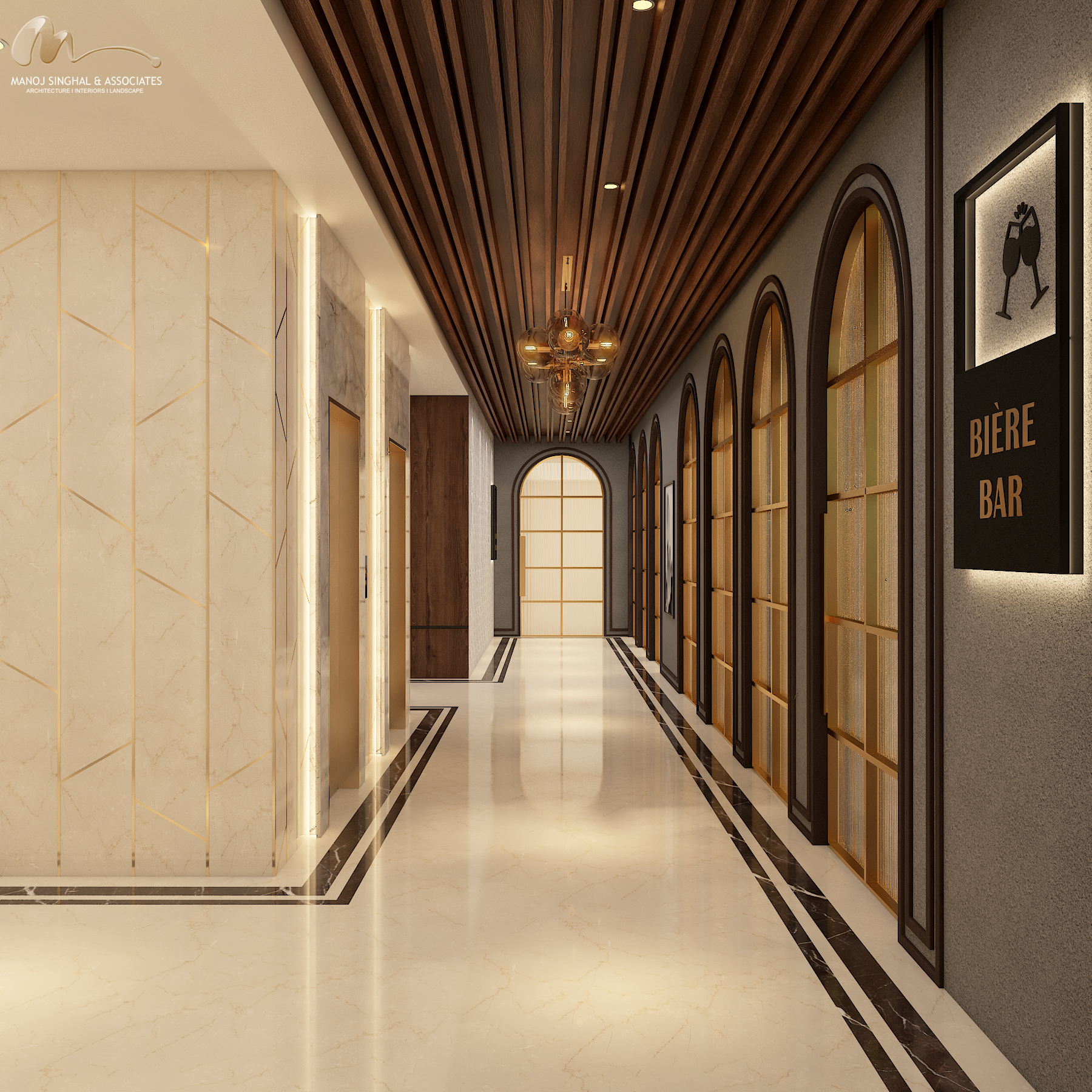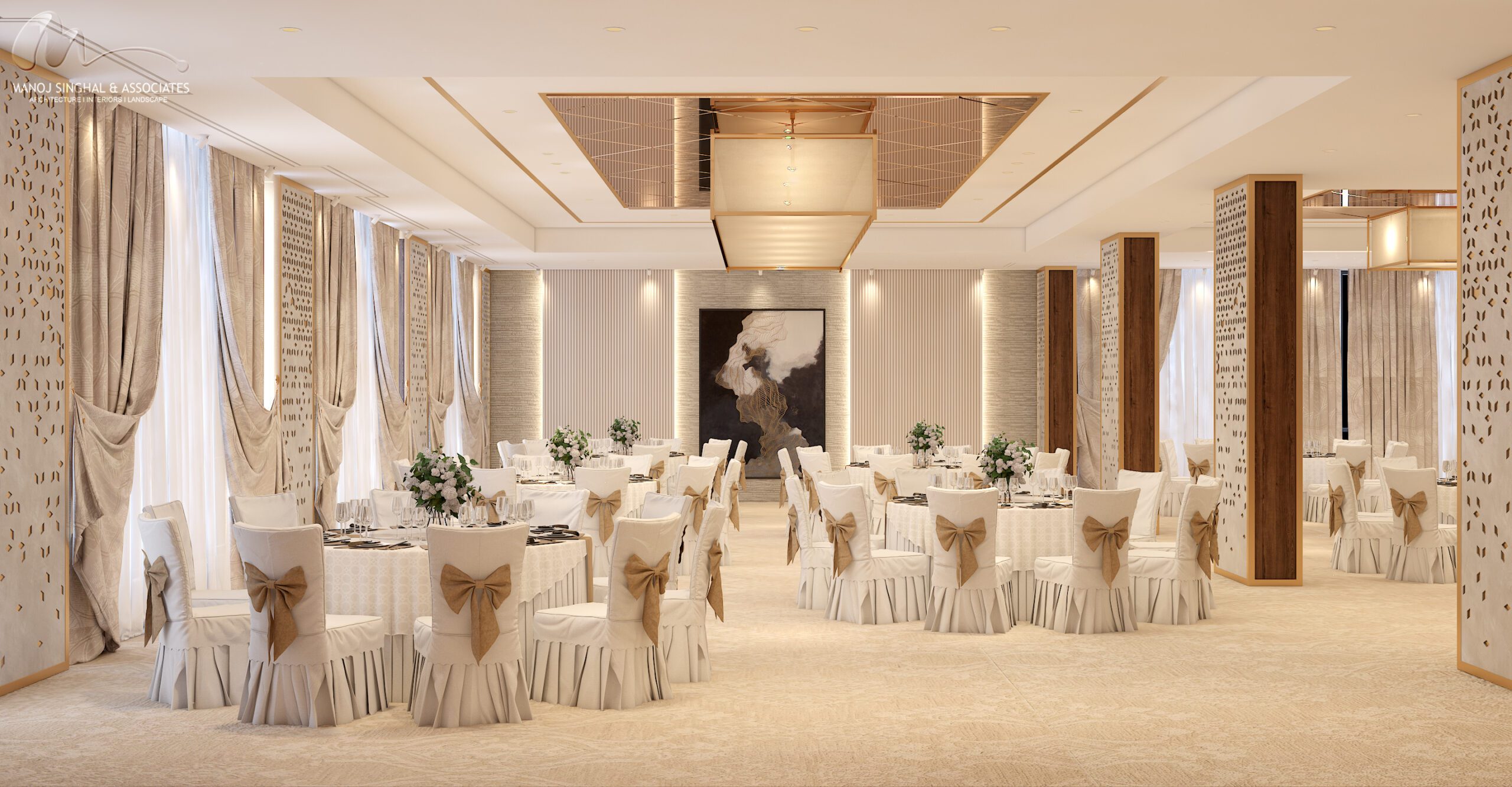 The interiors balance sophistication and warmth — from a grand reception and lobby accented with bespoke finishes, to a banquet hall designed for celebrations, and a vibrant restaurant and bar that bring character to the guest experience. The rooms embody modern comfort, combining understated elegance with functionality, while leisure amenities such as wellness areas and lounges complete the hospitality offering.